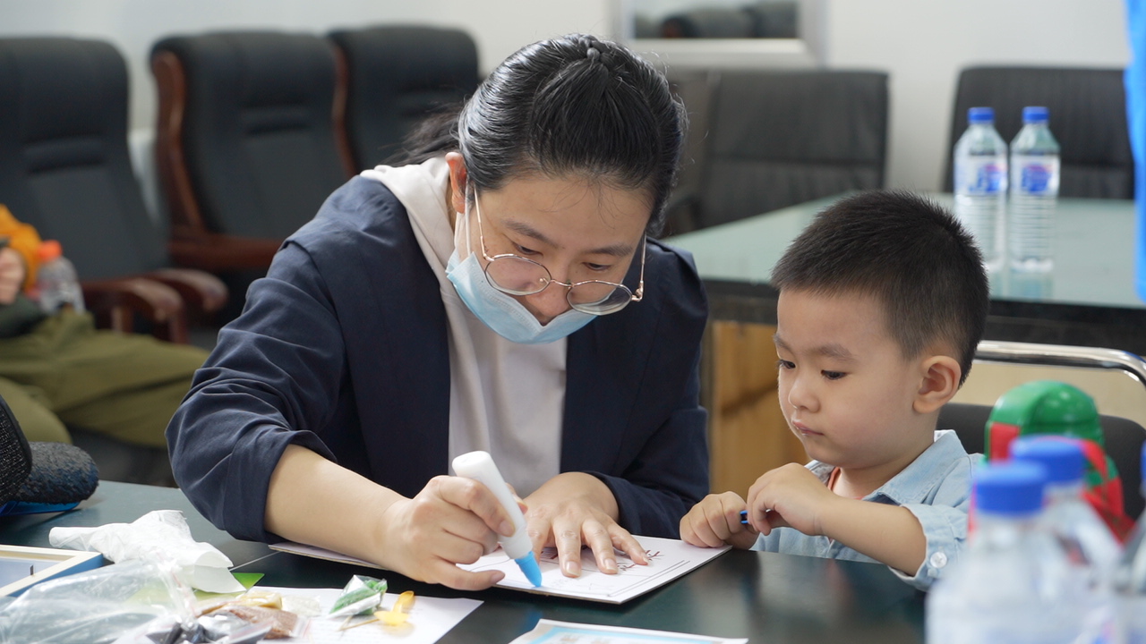 在志愿者的指导和家长的协助下,孩子们纷纷动起手来,以五谷为画笔,或粘或贴,勾勾点点,瞬间变幻出种种图画,惟妙惟肖。