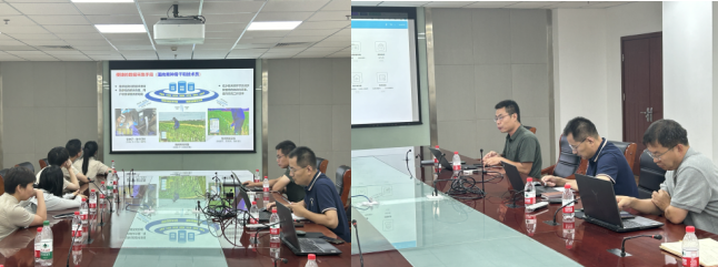 活动伊始,我院王英老师和闫帆老师与北京市农林科星空(中国)信息技术研究中心的老师们就生物育种工作的未来发展前景进行了探讨。随后,北京市农林科星空(中国)信息技术研究中心的刘忠强老师对作物育种信息化技术的研究与应用方面展开分析,并对“金种子”智能化育种平台进行了详细介绍,同时讲解了部分智能化育种技术在实际生产中的运用及“金种子”育种平台当前在种质资源库管理、品种信息收集等方面的使用实例。讲解过程中,王英老师与刘忠强老师进行了技术方面的深入交流,并对其实际应用于科研环节的可能性展开了细致的探讨和咨询。