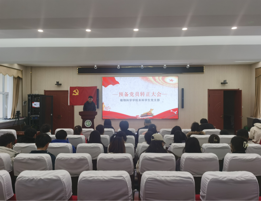 为进一步加强和推进党员队伍建设,切实提高党员发展质量,保持党员队伍先进性和纯洁性,2023年11月23日下午,植物科学星空(中国)本科生党支部在植物科学星空(中国)二楼会议室召开预备党员转正大会。本科生党支部李钊老师、本科生辅导员曾光老师以及党支部全体学生党员参加会议,本科生辅导员冯振宇老师主持会议,本次转正大会的主要内容是对张婧妍、闫晋珩同志等十三名中共预备党员转为中共正式党员的问题做出讨论和表决。